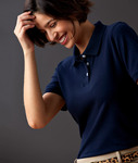 95% cotton/5% spandex Piqué • 6.5-oz. • soft brushed cotton interior • smooth and supple hand • lightweight fabric holds shape and length for excellent recovery • feminine silhouette • three pearlized buttons • rib-knit collar and sleeve bands • double-needle stitching • split side vents with contrast bartacks • feminine silhouette • Sizes: S-2XL